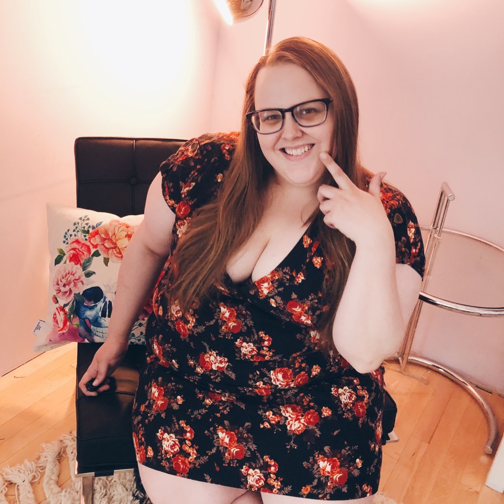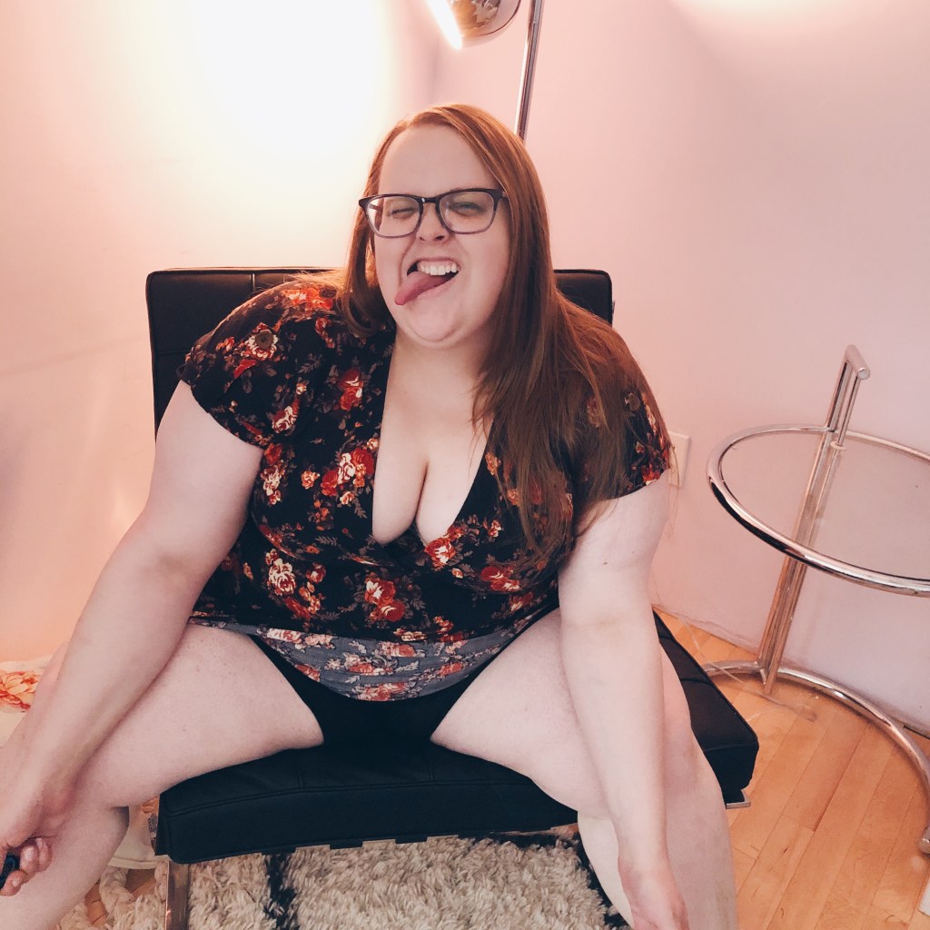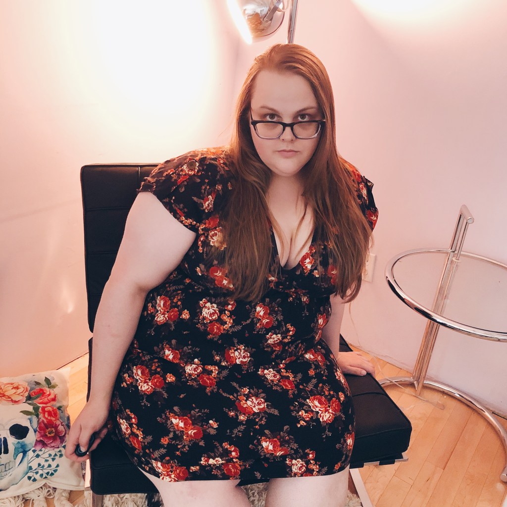 But one of my favorite Instagram users mentioned that they were self-conscious sitting down. It’s a challenge to be sure. I must’ve taken like forty pictures and these were the only three I was happy with. But also I can see what I actually look like — overcoming the huge disconnect between my mind and body (the dysmorphia is real), as well as being a plus-size person in front of the camera. It’s interesting to challenge myself this way. I’m pretty good at writing, and I’ve always been good at moving my body (I’ve got a black belt in karate for Pete’s sake), but looking at myself and being in front of a camera is a completely different hurdle.